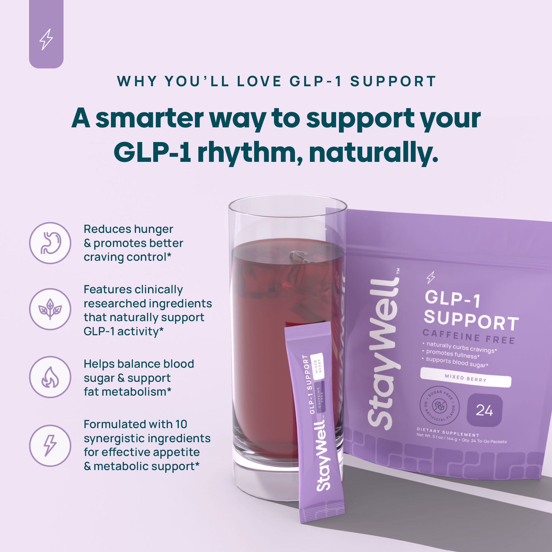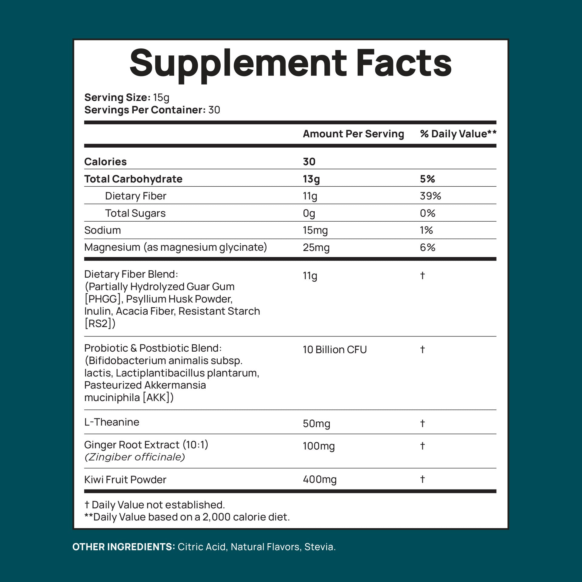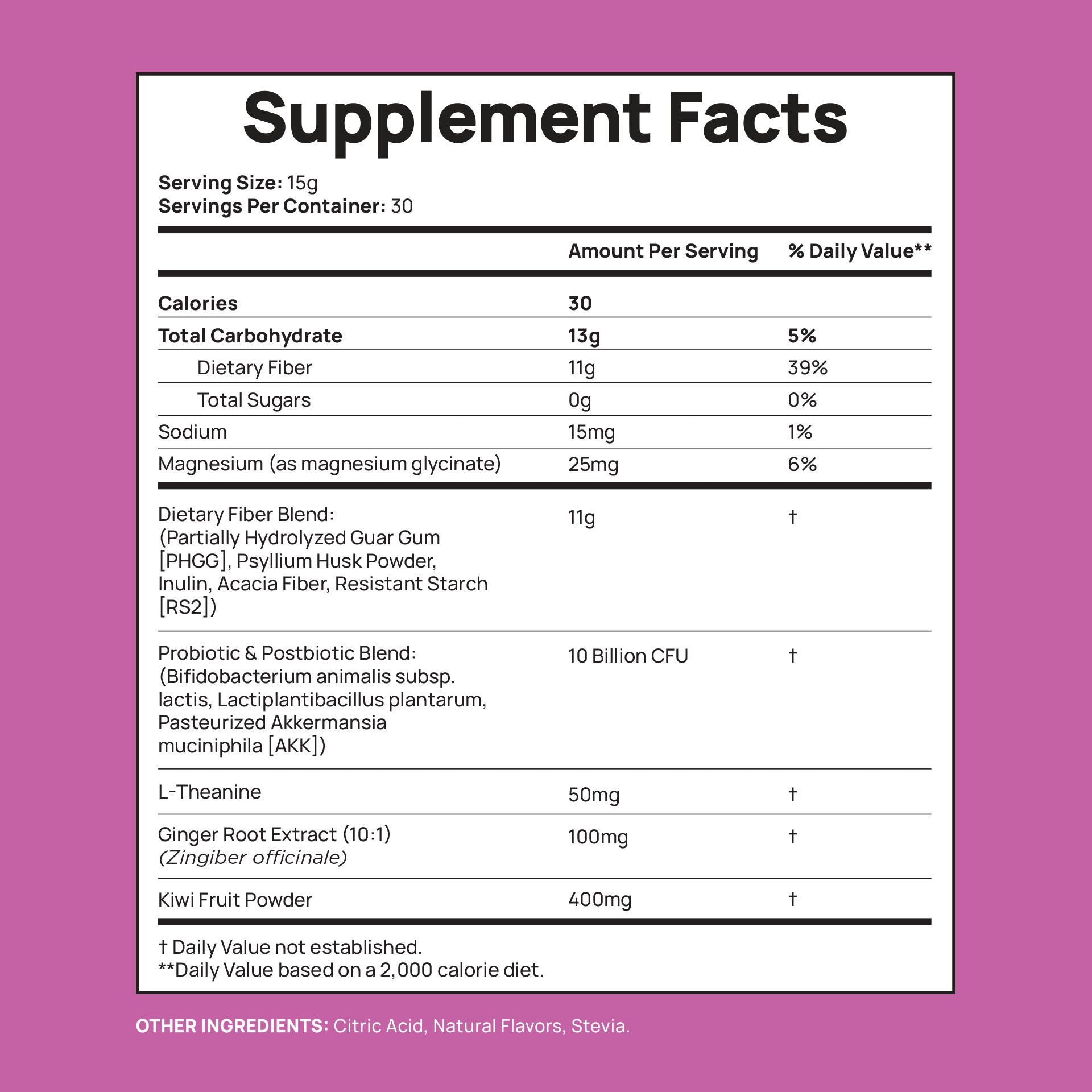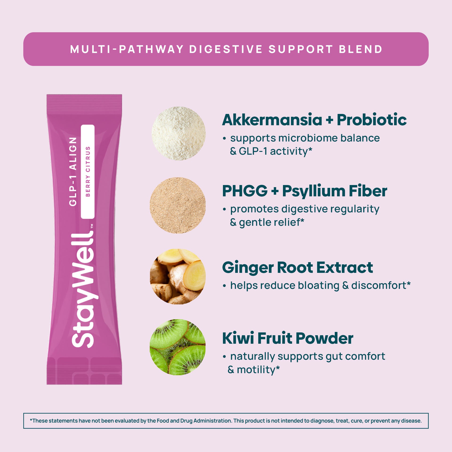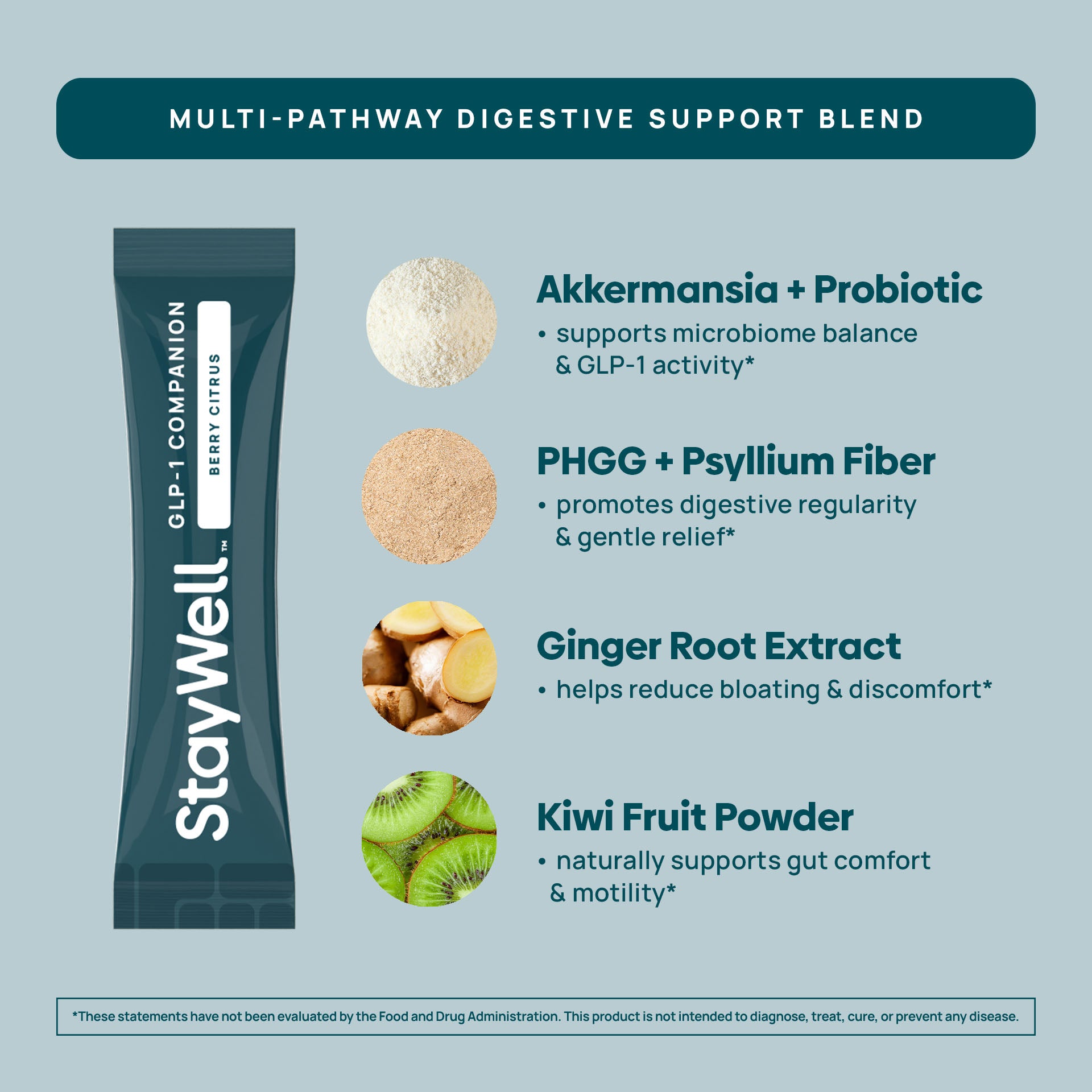 Gut comfort and regularity support designed for people using GLP-1 medications, with probiotic and postbiotic balance.