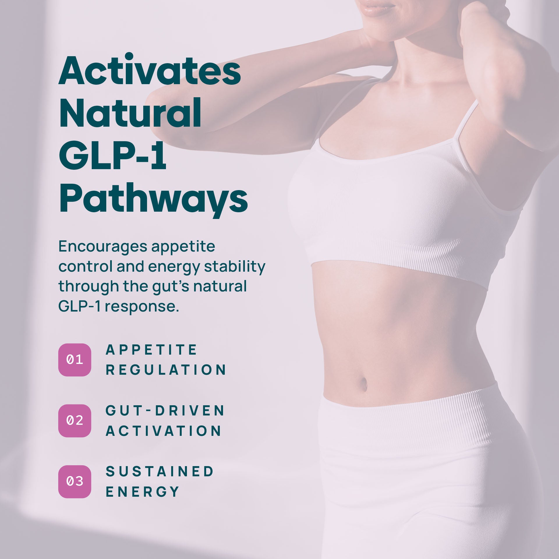 Gut-driven GLP-1 pathway support that boosts fullness, regulates appetite, and promotes balanced energy with clinical fiber and Akkermansia.